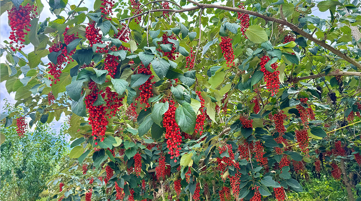 “春有桐花遍地,夏享绿树成荫,秋观硕果累累,冬赏红珠傲雪”。山桐子树干是优质木料,可做阻燃材料,果实能榨油,油和饼粕中可提取保健品、化妆品、工业用品等化工原料,树形可观赏,可谓全身都是宝。在我国主要的12种木本油料树种中,山桐子是我国发现最理想的优质高产木本油料树种,被专家学者誉为“中国油橄榄”、“黄金树”、“空中油库”。目前,从事山桐子产业从业人员2000余人,年产值可达3.6亿,利税1.08亿。中科红玉生物科技有限公司打造的山桐子组培科研中心、山桐子组培苗育苗基地是全国山桐子组培技术最为领先的科研基地和最大的山桐子组培苗培育基地。